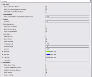 - Plots a line across your chart in the style of your choosing, for Bid, Ask, Last, or any combination of the three.